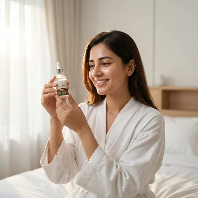 "I have been using this serum for one month and the results are amazing. My skin looks brighter and more even now. Dark spots have reduced a lot and my face feels smooth and fresh."
