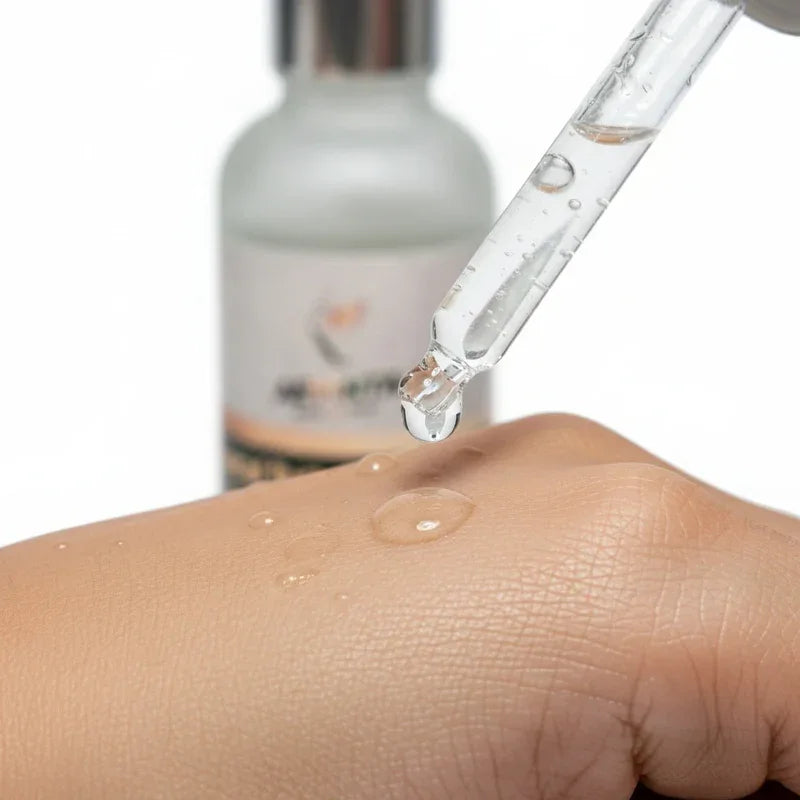 Take 2–3 drops on your fingertips and dot evenly across your face, neck, and décolletage.